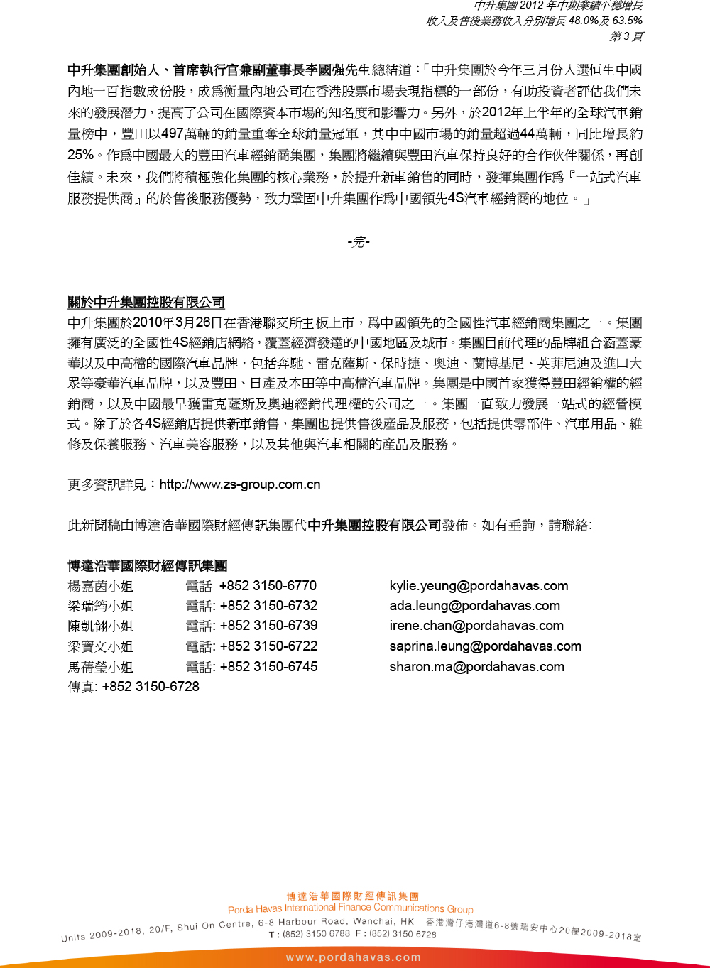 投资者查询 IR Contacts